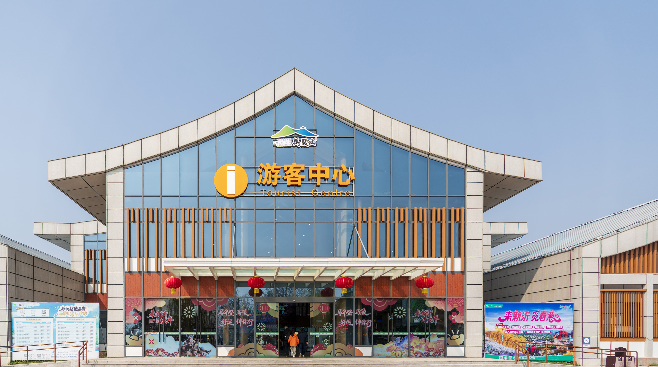 新沂马陵山景区游客中心。马陵山风景名胜区位于山东省郯城县到江苏省徐州市新沂市之间,规划面积28.9平方公里。由老虎崖、峰山、斗山、虎山、奶奶山和黄花菜岭等山头组成。马陵山风景名胜区规划建设面积28.9平方公里,面积56.8平方公里,是国家4A级旅游景区。