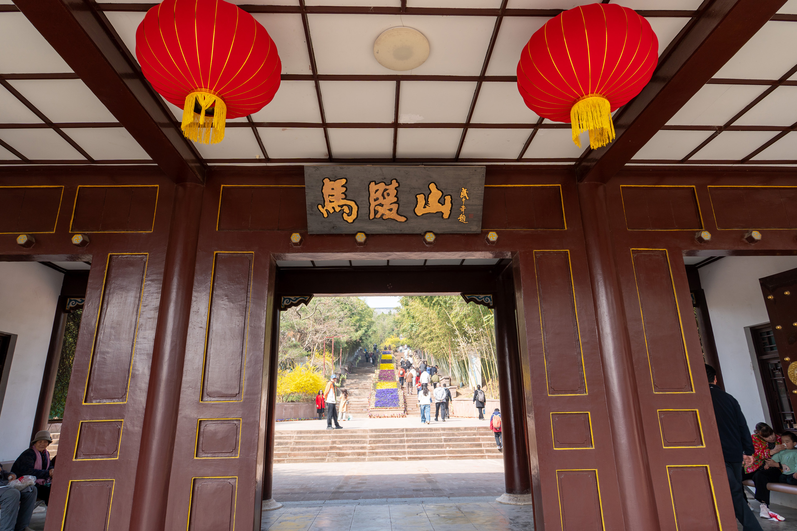 检票进入大门。马陵山古称司吾山、司镇山、吾山。山虽不高,却重峦迭峰,蕴幽藏丽。为“淮北胜概”,“形胜之美称于江淮”。清代乾隆皇帝六度南巡、三次路过司吾山,写下“钟吾漫道才拳石,早具江山秀几分”的诗句,形象地赞美了马陵山的瑰美。