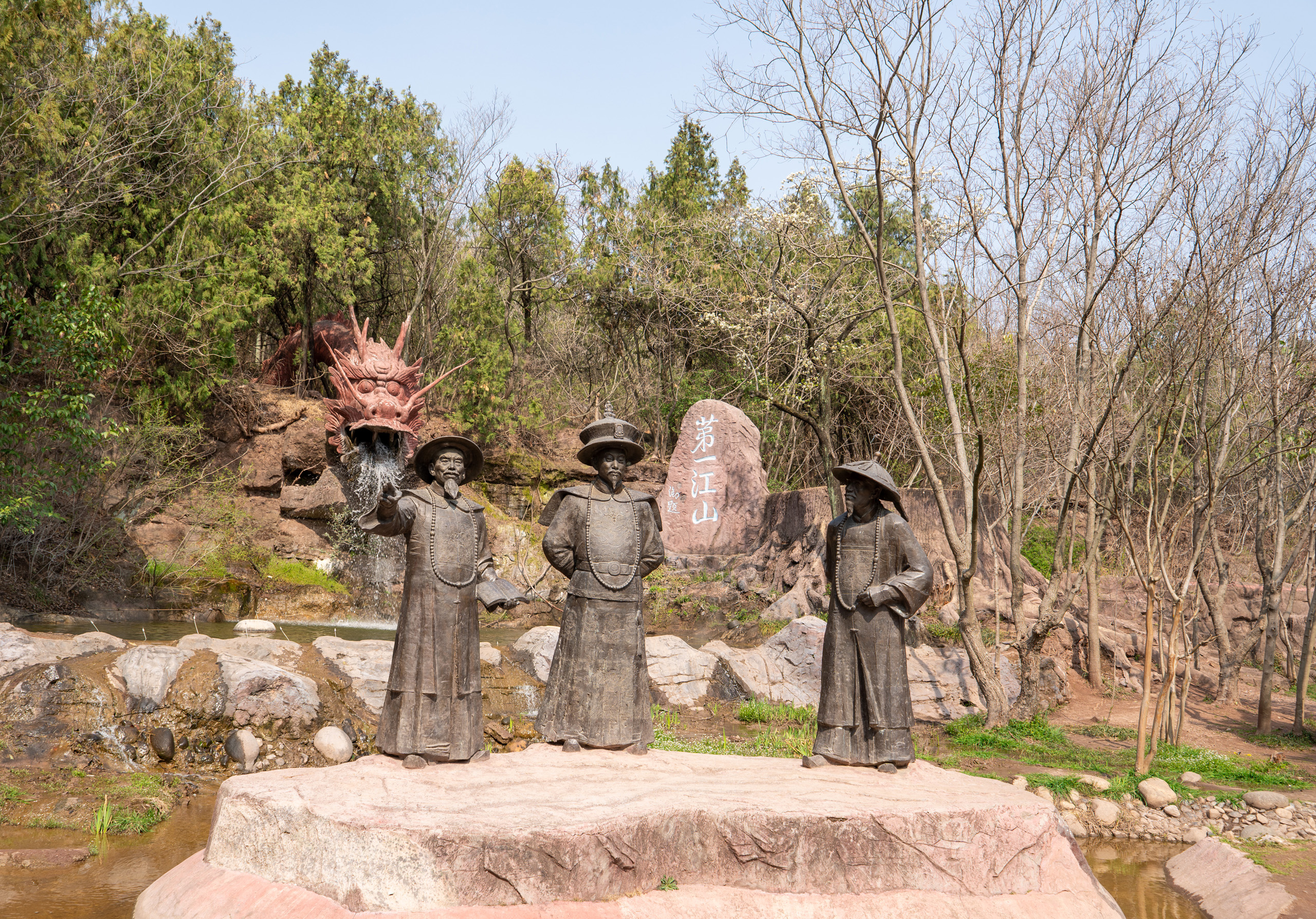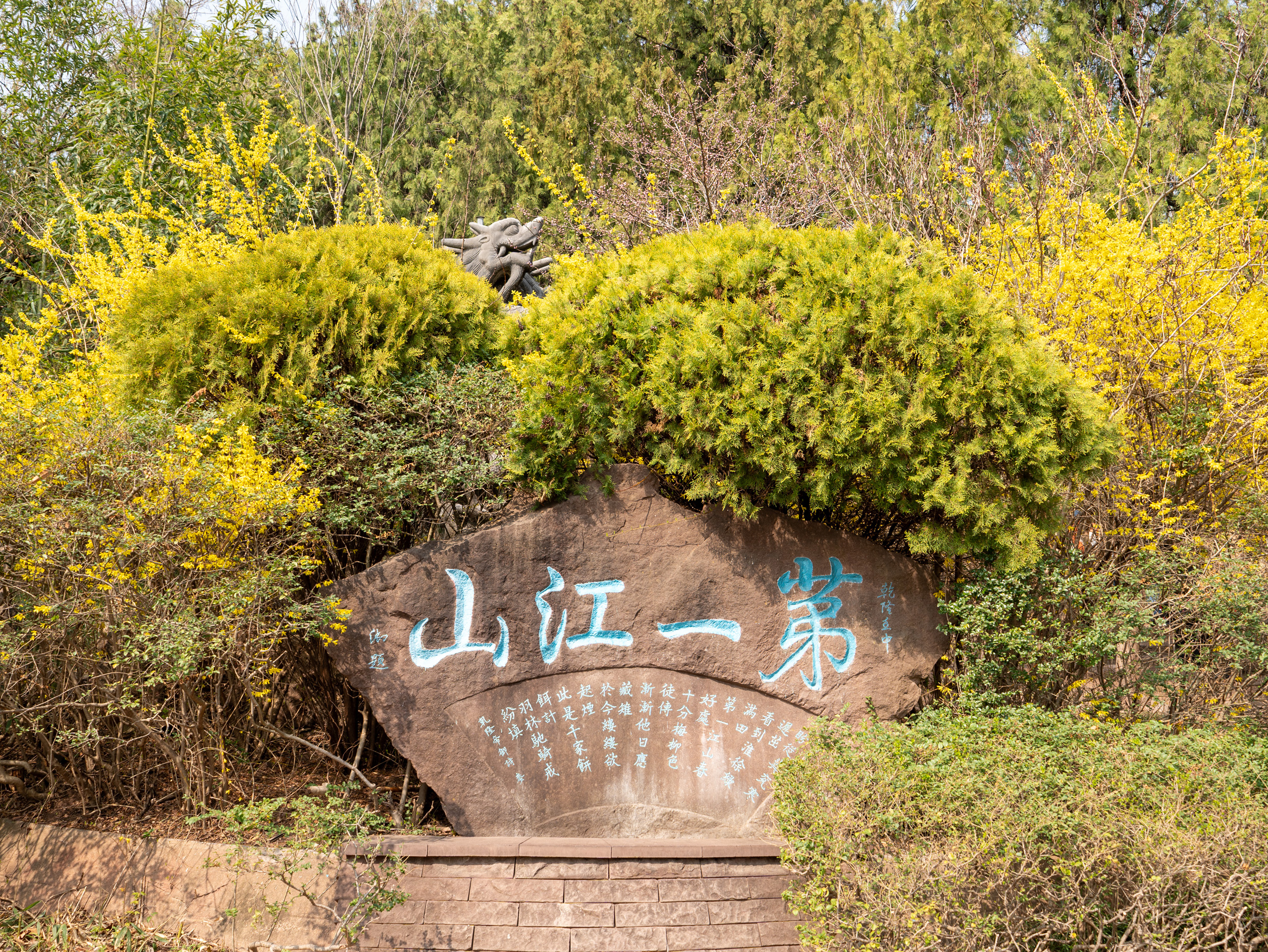 乾隆书写的《第一江山》。马陵山又名马岭山、马连山,发脉泰岳,绵亘数百里,号称“八百里马陵”。公元前341年,齐魏马陵之战孙膑胜庞涓于此,战马相连得名。清朝宰相刘墉登临此山亲题“范水模山”。乾隆皇帝六度南巡、三来此山,留下了“钟吾漫道才拳石,早具江山秀几分”的诗句,形象地赞美了马陵山的瑰美,并赞此山为“第一江山”。