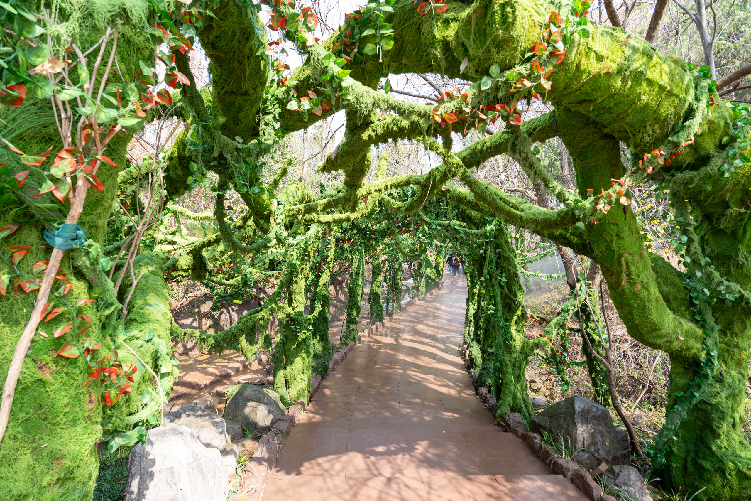 藏兵洞。马陵山的藏兵洞是景区里一个非常独特且体验感十足的景点。它并不是古代遗迹,而是一个建于上世纪60年代末、规模宏大的现代军事防空洞,如今被改造成了带有梦幻灯光秀的“网红打卡地”和“天然空调房”。