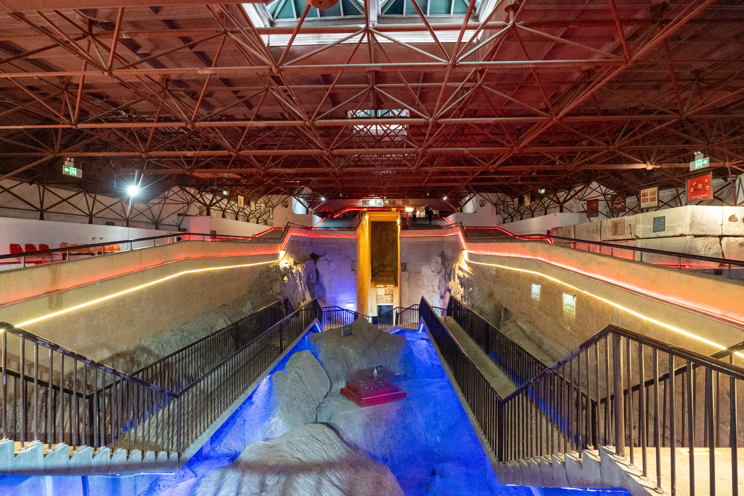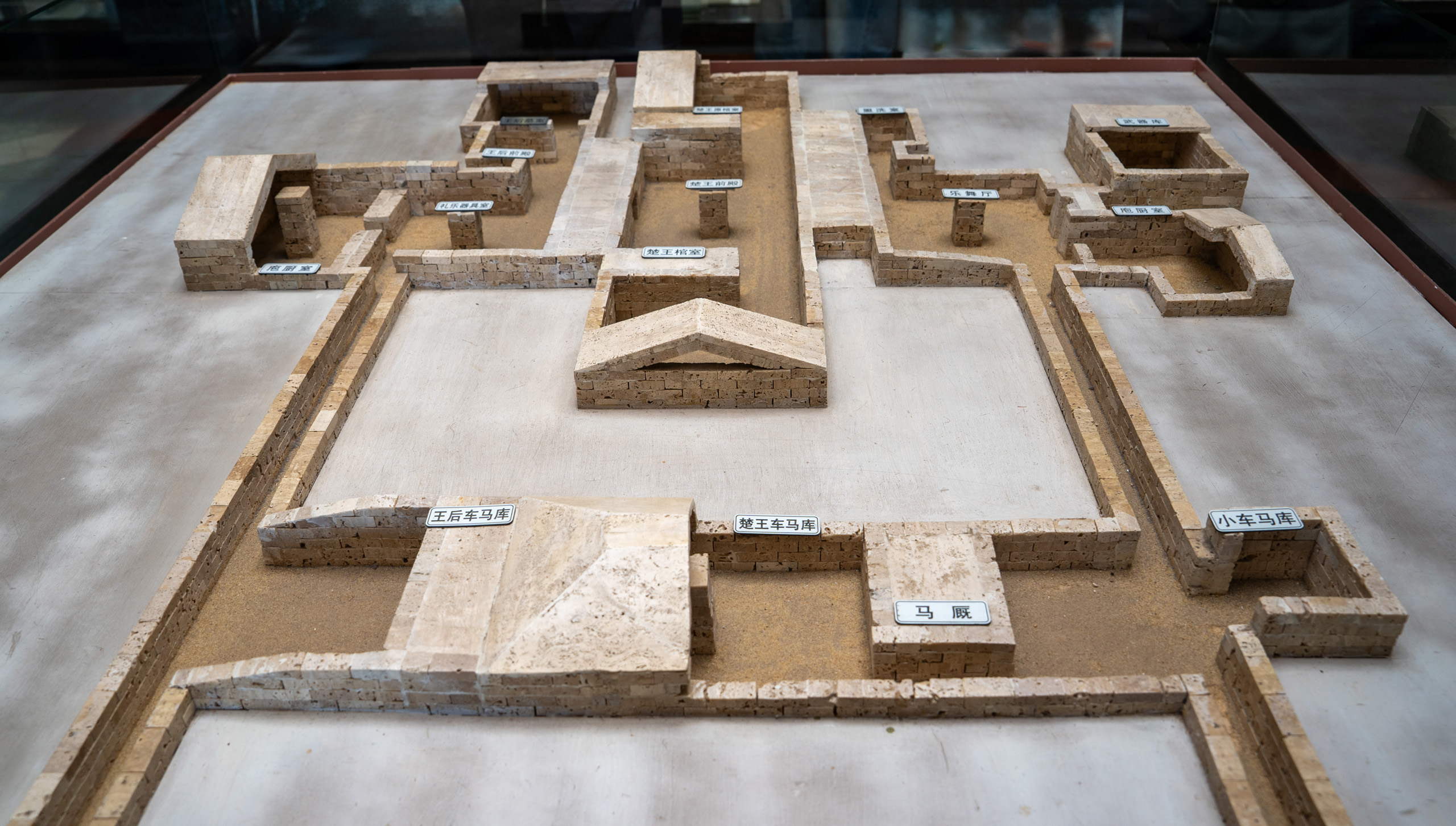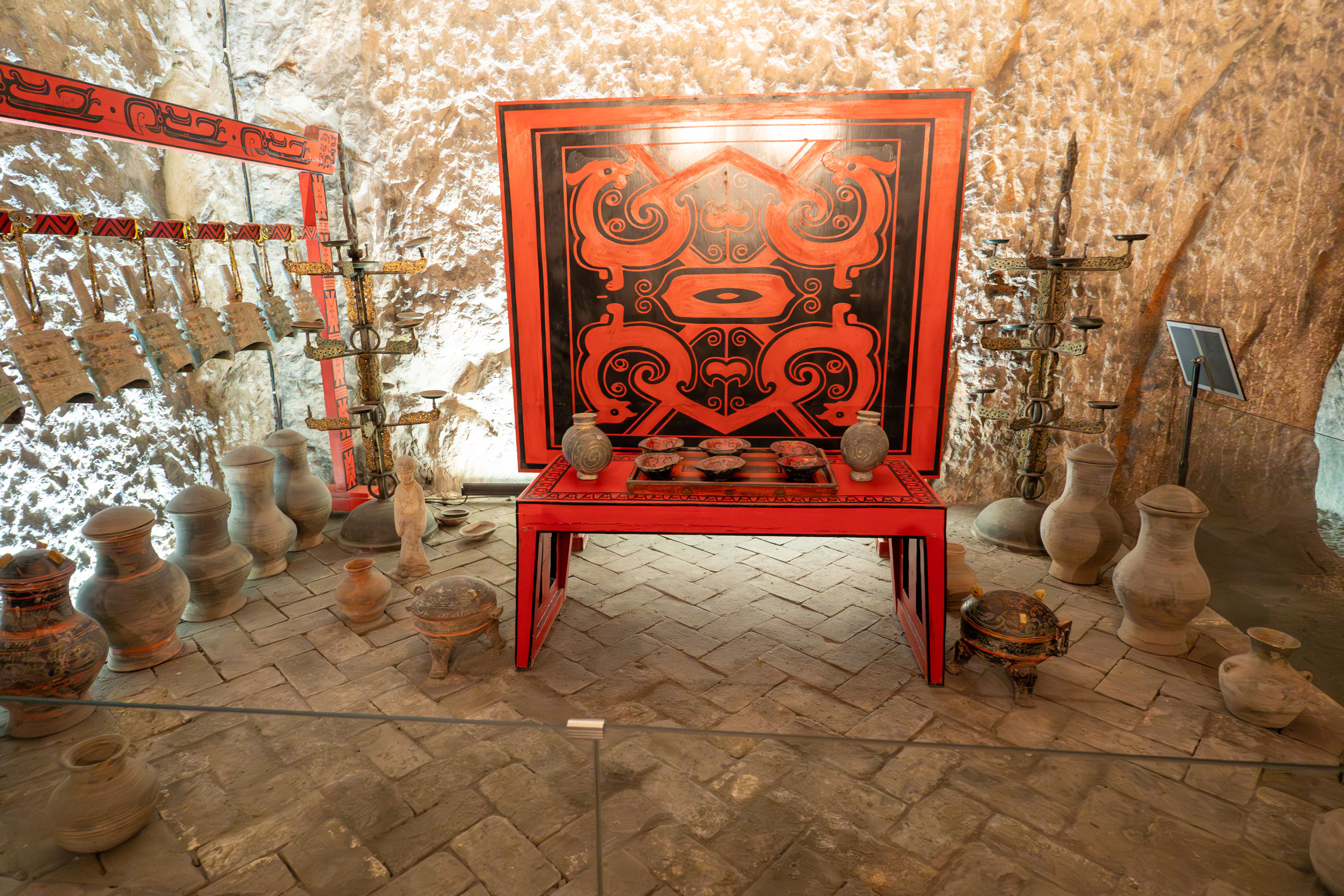 笔直的永道。龟山汉墓博物馆的核心展示对象龟山汉墓是西汉第六代楚王刘注及其夫人的夫妻合葬墓。该墓为典型的横穴式崖洞墓,依山为陵,凿石为藏,工程浩大,几乎掏空了整座山体。墓葬由两条墓道、两条甬道和15间墓室组成,总面积达700余平方米,容积约2600立方米。其建筑工艺精湛,两条平行的甬道各长56米,沿中线开凿最大偏差仅5毫米,精度达万分之一;两甬道相距19米,夹角仅20秒,误差为1/16000 。甬道四壁及用于封堵的26块塞石(每块重6-7吨)均打磨光洁如镜,接缝严密 。墓室内设有完整科学的排水系统,地面呈10/1000的自然坡度。南北墓室之间以一道高1.8米、呈曲尺形的“壸门”相通,此门是汉代异穴合葬向同穴合葬过渡的重要特征。此外,墓葬至今留存四大未解之谜:甬道超高精度之谜、巨型塞石运输之谜、墓顶“乳钉星宿图”寓意之谜,以及南壁“楚王迎宾”神秘人影的成因之谜 。
