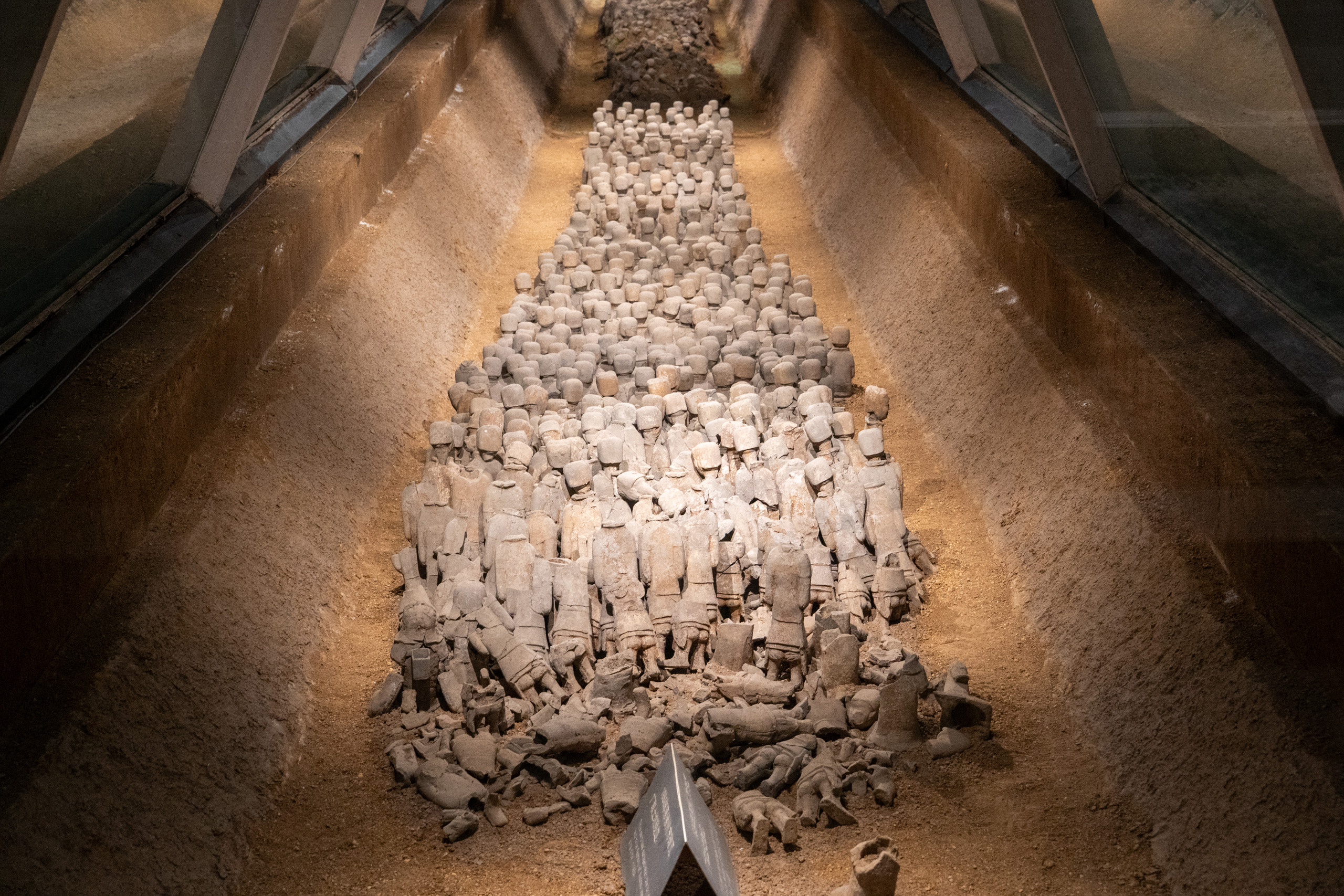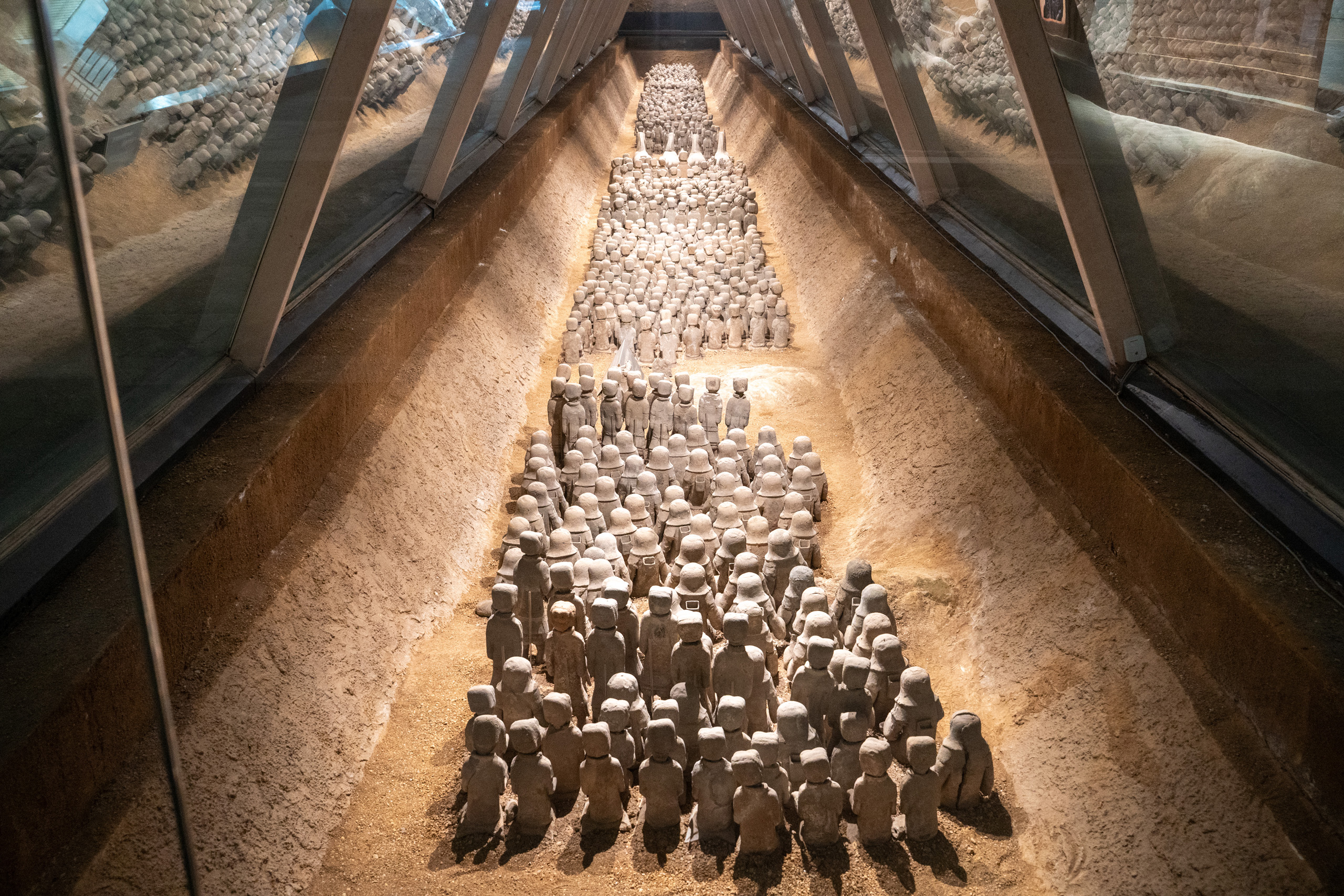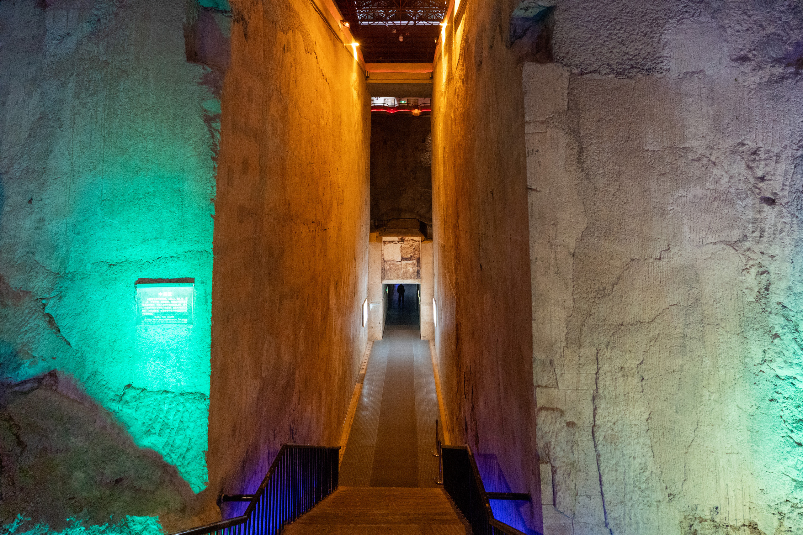 笔直的永道。龟山汉墓博物馆的核心展示对象龟山汉墓是西汉第六代楚王刘注及其夫人的夫妻合葬墓。该墓为典型的横穴式崖洞墓,依山为陵,凿石为藏,工程浩大,几乎掏空了整座山体。墓葬由两条墓道、两条甬道和15间墓室组成,总面积达700余平方米,容积约2600立方米。其建筑工艺精湛,两条平行的甬道各长56米,沿中线开凿最大偏差仅5毫米,精度达万分之一;两甬道相距19米,夹角仅20秒,误差为1/16000 。甬道四壁及用于封堵的26块塞石(每块重6-7吨)均打磨光洁如镜,接缝严密 。墓室内设有完整科学的排水系统,地面呈10/1000的自然坡度。南北墓室之间以一道高1.8米、呈曲尺形的“壸门”相通,此门是汉代异穴合葬向同穴合葬过渡的重要特征。此外,墓葬至今留存四大未解之谜:甬道超高精度之谜、巨型塞石运输之谜、墓顶“乳钉星宿图”寓意之谜,以及南壁“楚王迎宾”神秘人影的成因之谜 。