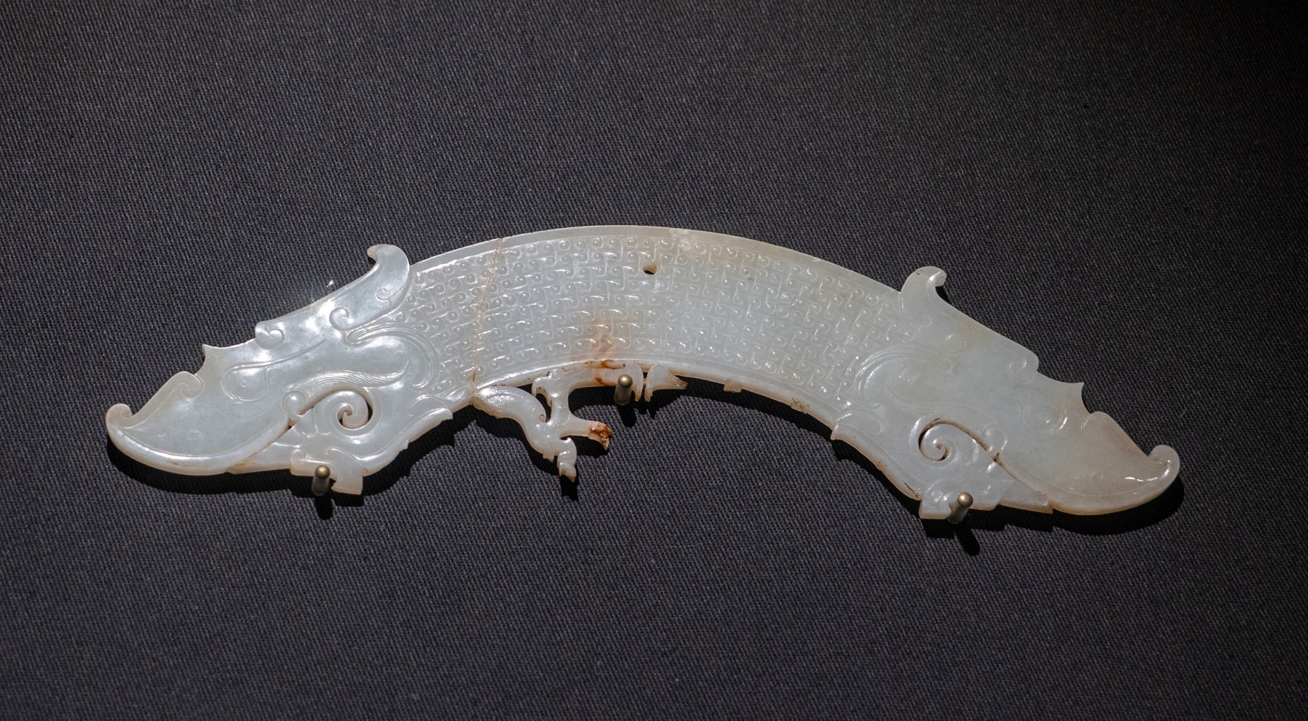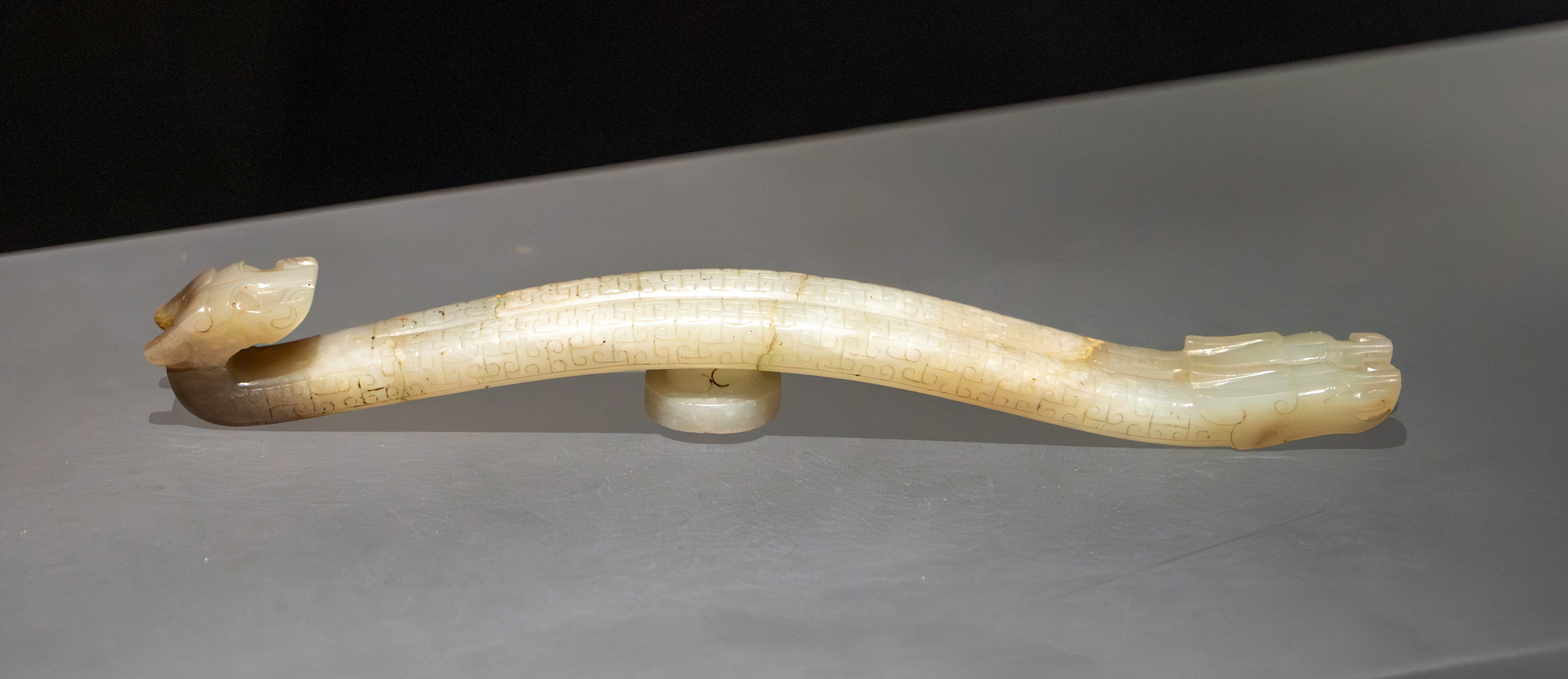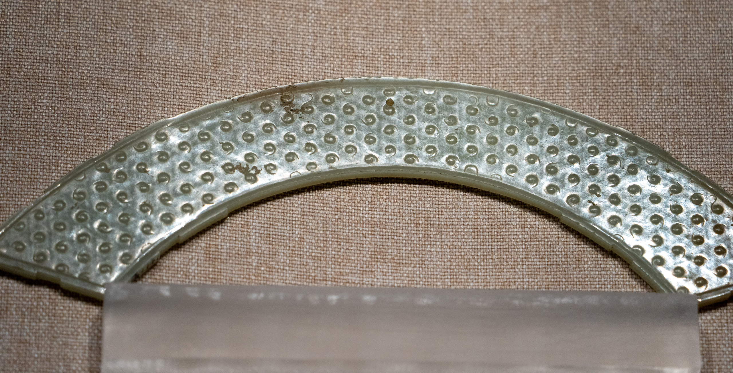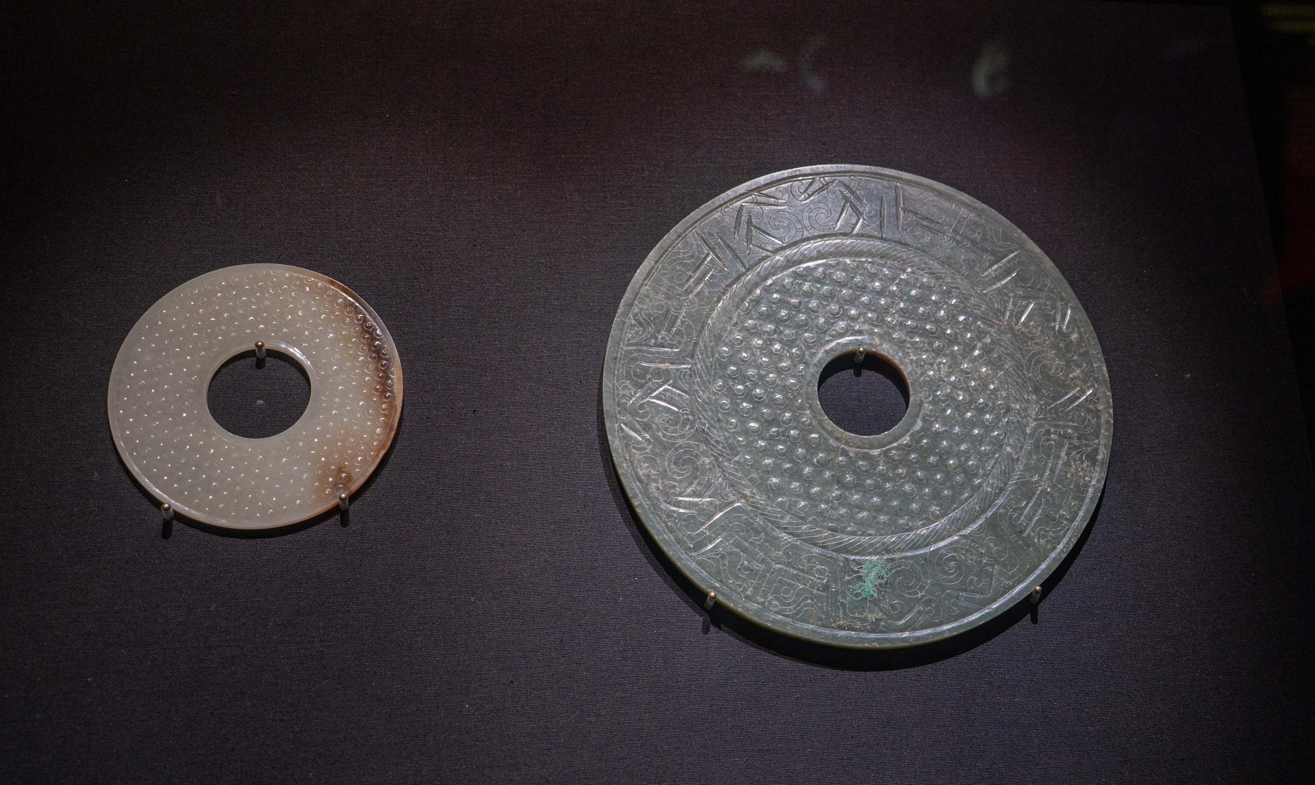 徐州博物馆玉卮,也就是酒杯。以整玉制作,由器盖和器身两部分组成。器身呈筒形,口略大,下支三兽形足。口沿及底边各有一卷云纹饰带,其间满饰勾连雷纹。器盖和器身以子母口相扣合,盖钮为五瓣柿蒂形,上饰四角星并填网纹。盖面四周凸雕三枚柱状钮。徐州博物馆镇馆之宝。