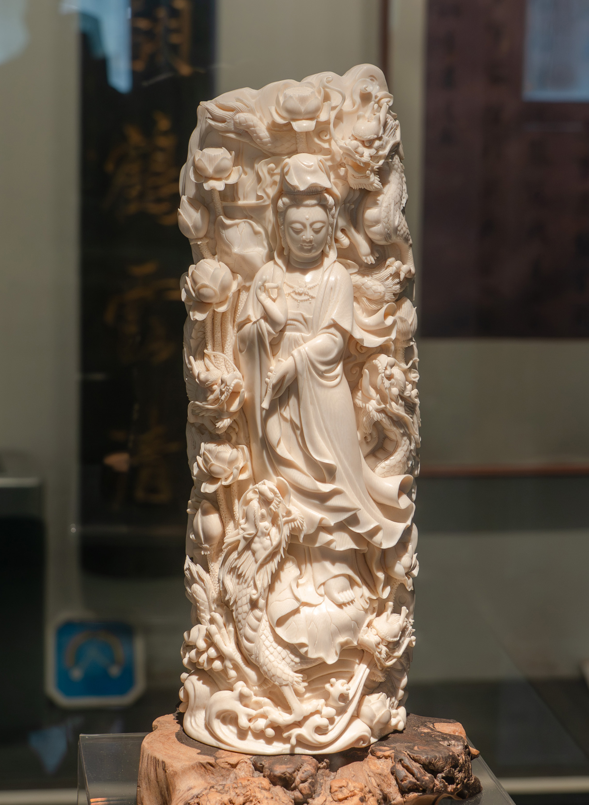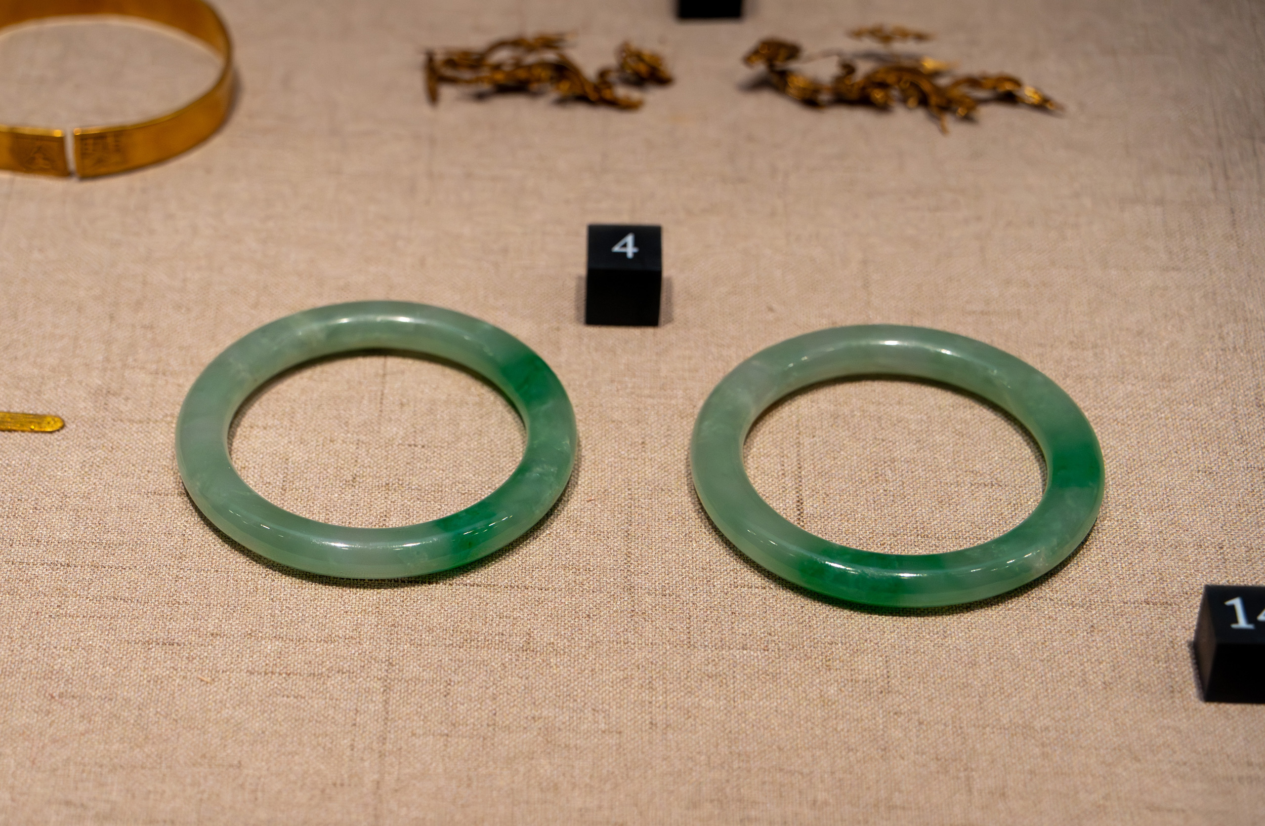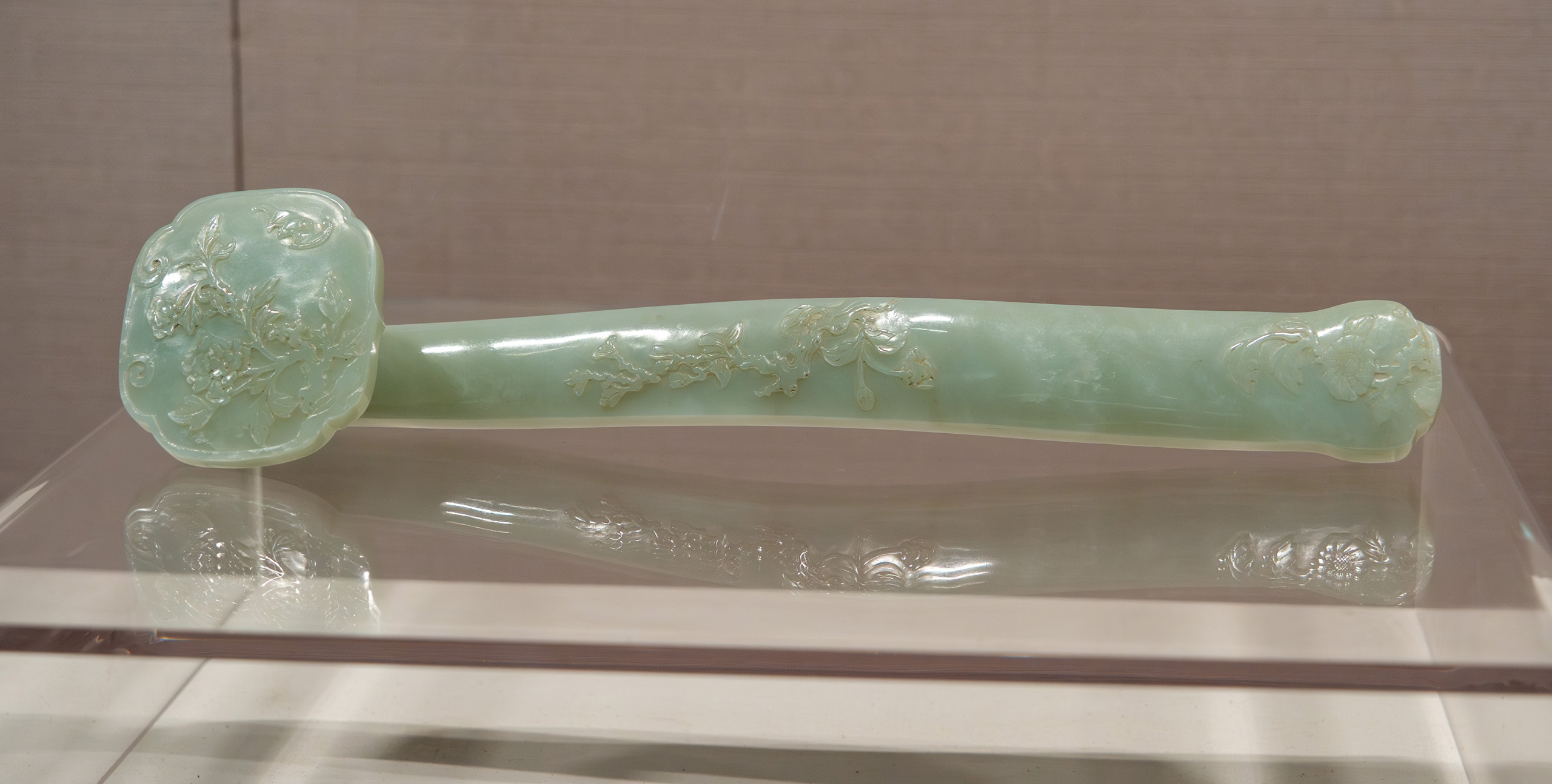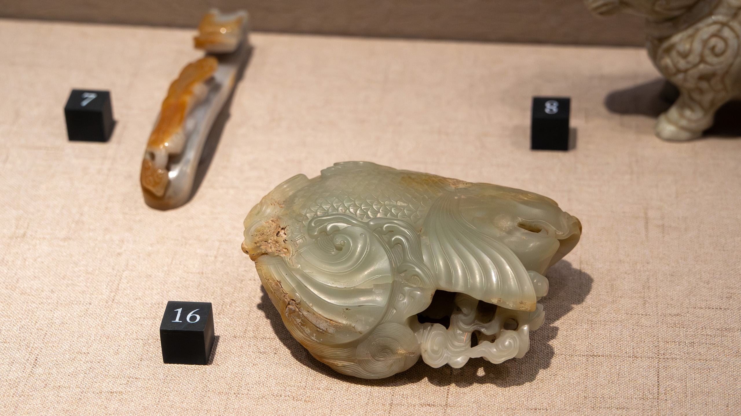徐州博物馆玉卮,也就是酒杯。以整玉制作,由器盖和器身两部分组成。器身呈筒形,口略大,下支三兽形足。口沿及底边各有一卷云纹饰带,其间满饰勾连雷纹。器盖和器身以子母口相扣合,盖钮为五瓣柿蒂形,上饰四角星并填网纹。盖面四周凸雕三枚柱状钮。徐州博物馆镇馆之宝。