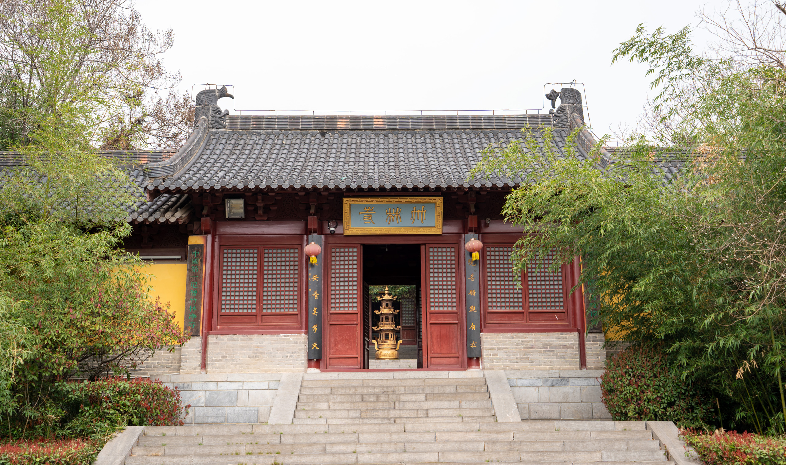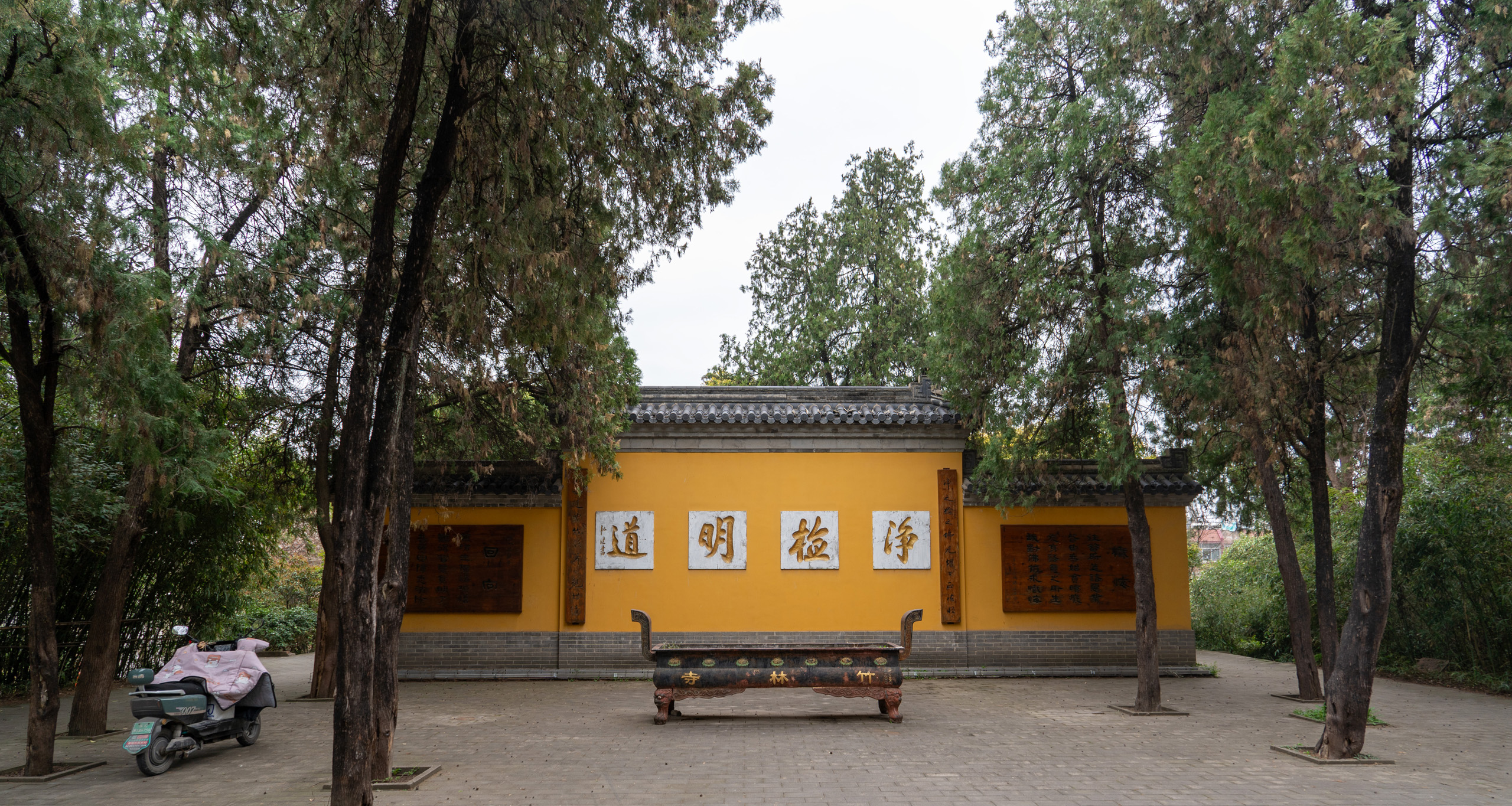 竹林寺照壁,净检明道。净检:指净检法师(公元291年-?),是中国历史上第一位受戒出家的比丘尼(尼姑)。她俗名仲令仪,正是徐州人。竹林寺作为她曾经驻锡的道场,也因此被誉为中国第一比丘尼道场。