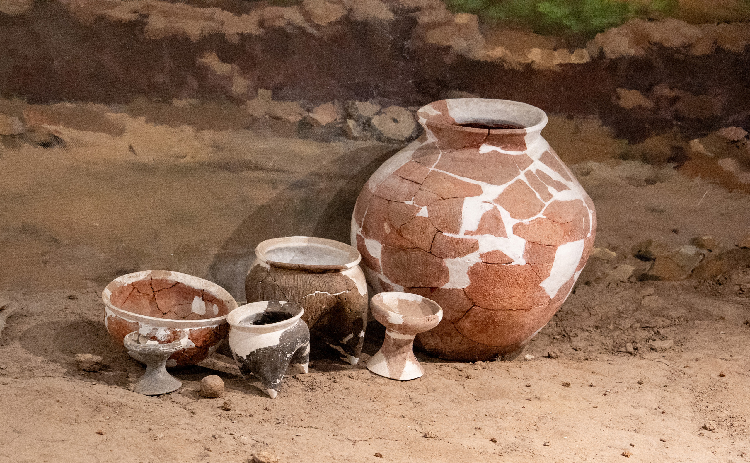 随葬彩绘陶器。卵圆形陶器外形接近潜水艇。